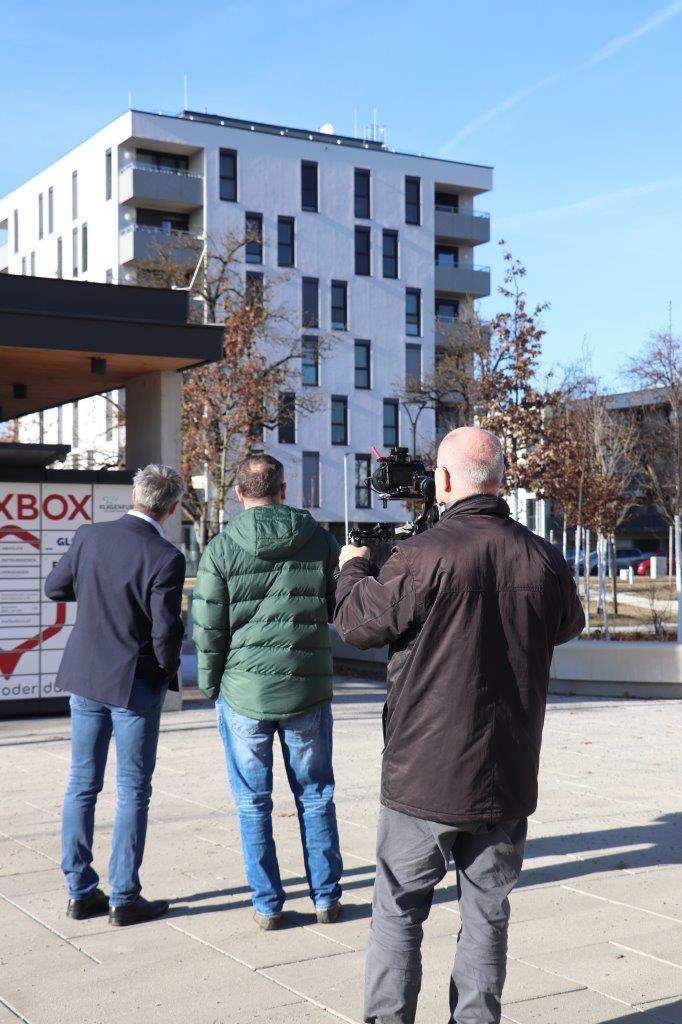 Ein bedeutsames Ereignis gab es vergangene Woche beim Smart City Projekt hi Harbach. Im Zuge einer Fernsehreportage über die Stadt Klagenfurt, als eine von 100 Klimaschutz-Vorzeigestädten Europas, und ihrem Weg zur Klimaneutralität besuchte der Fernsehsender ARTE unter anderem auch das Wohnbauprojekt der VKS.