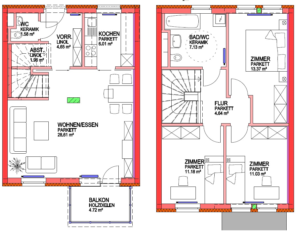 Kinderzimmer, Kinderzimmer, Abstellraum, Bad/WC, Balkon, Flur, Kellerabteil, Kinderzimmer, Küche, Schlafzimmer, Tiefgaragenabstellplatz, Vorraum, WC, Wohn/EsszimmerStockwerk