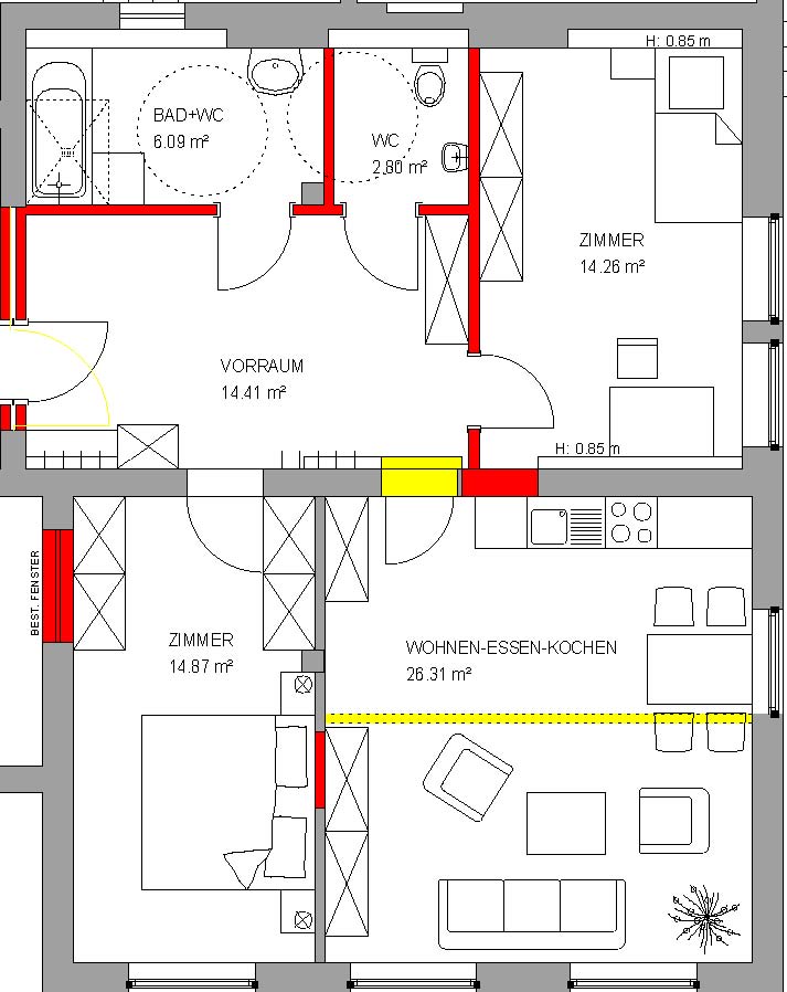 Bad/WC, Kellerabteil, Kinderzimmer, Schlafzimmer, Vorraum, WC, Wohnen/Essen/KücheStockwerk