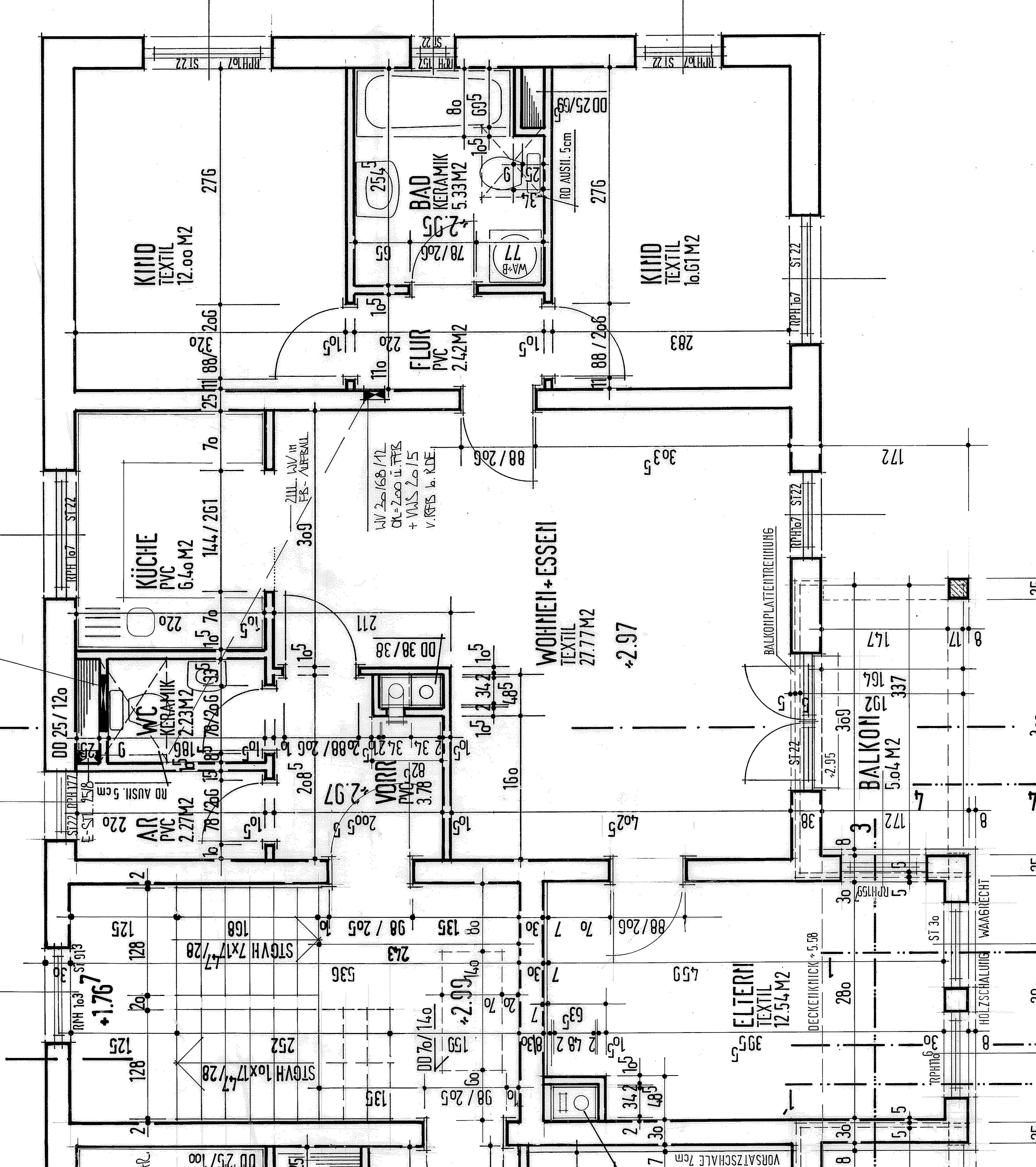 Kinderzimmer, Kinderzimmer, Abstellplatz, Abstellraum, Bad, Balkon, Flur, Kellerabteil, Küche, Schlafzimmer, Vorraum, WC, Wohn/EsszimmerStockwerk