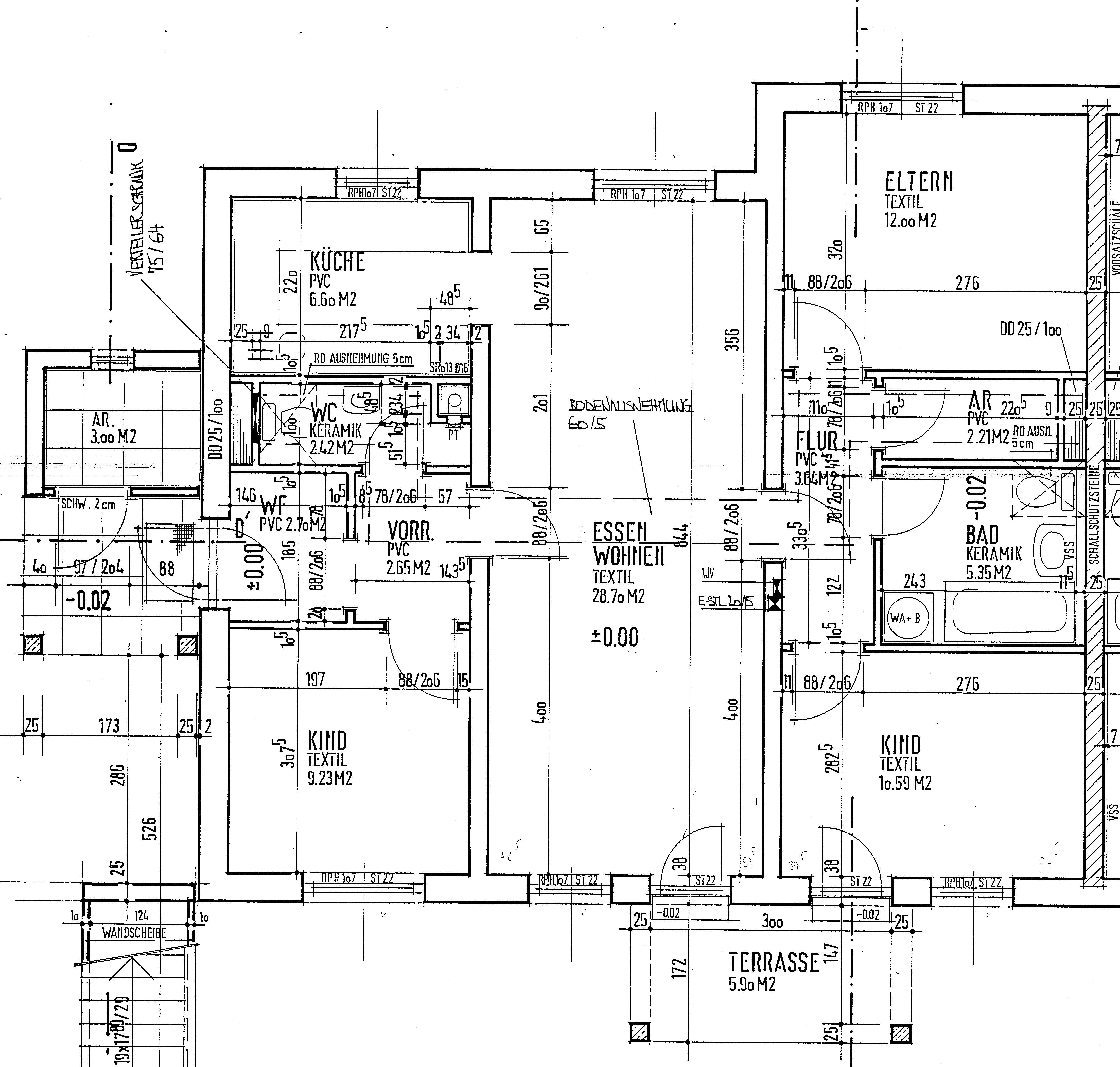 Kinderzimmer, Kinderzimmer, Abstellraum, Bad, Flur, Kellerabteil, Küche, Schlafzimmer, Terrasse, Vorraum, WC, Windfang, Wohn/EsszimmerStockwerk