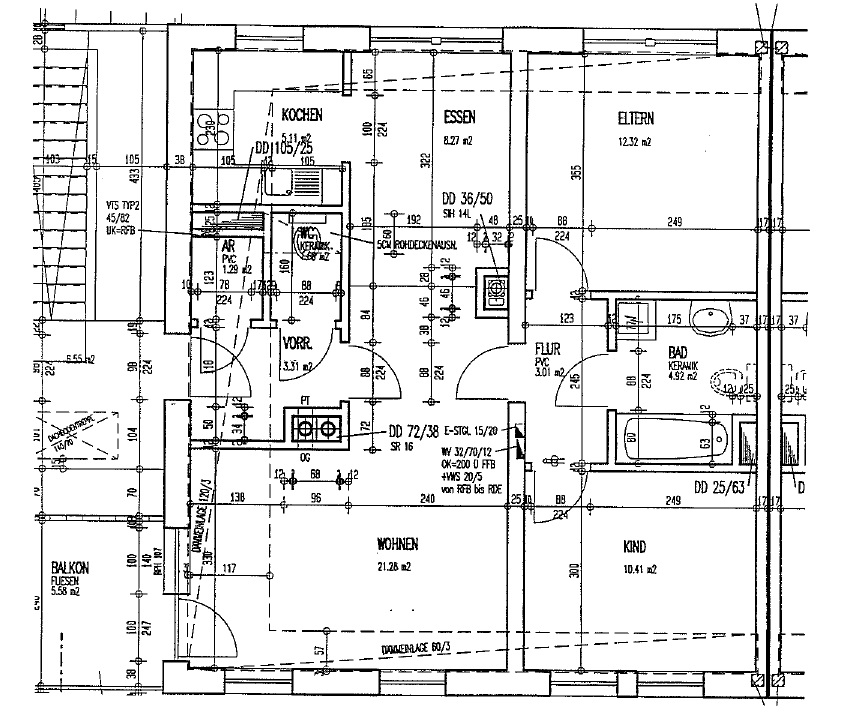 Abstellplatz, Abstellraum, Bad, Balkon, Esszimmer, Flur, Kellerabteil, Kinderzimmer, Küche, Vorraum, WC, WohnzimmerStockwerk