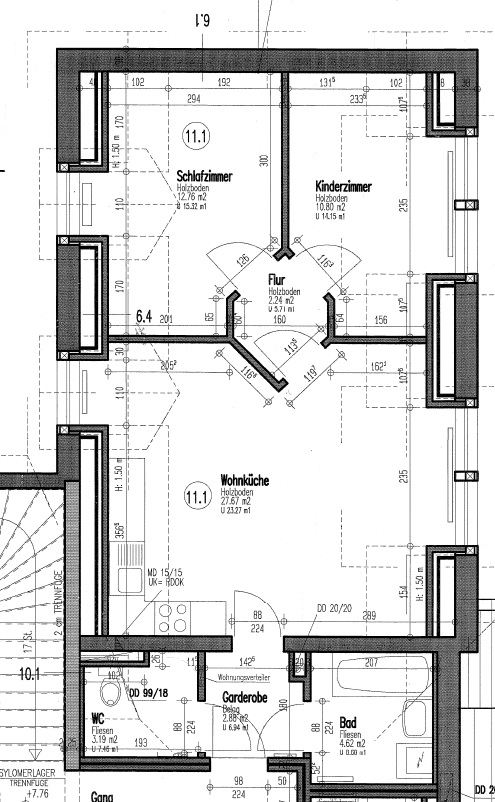 Bad, Flur, Garderobe, Kellerabteil, Kinderzimmer, Schlafzimmer, WC, WohnkücheStockwerk