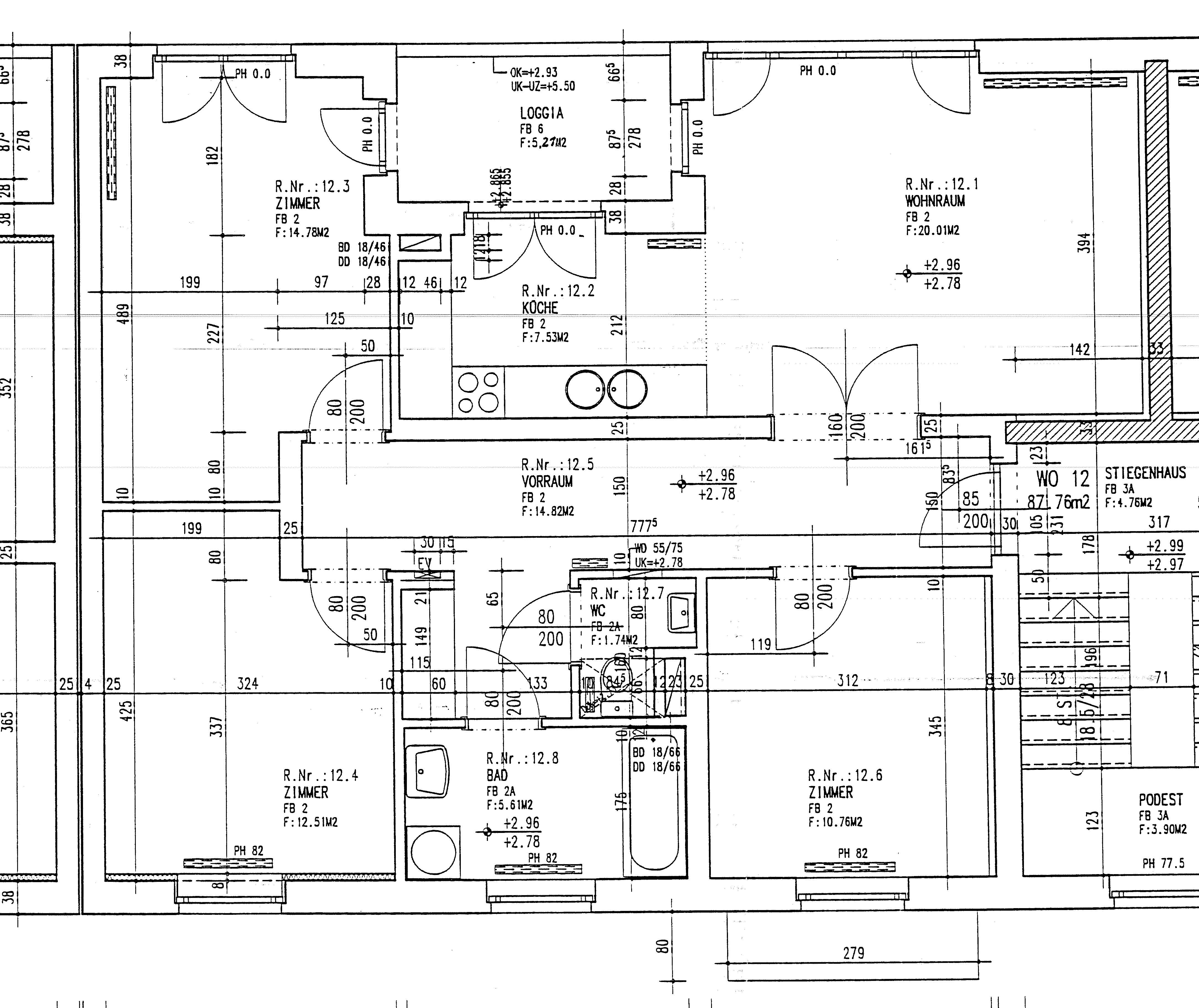 Kinderzimmer, Kinderzimmer, Abstellplatz, Bad, Kellerabteil, Küche, Loggia, Schlafzimmer, Vorraum, WC, Wohn/EsszimmerStockwerk
