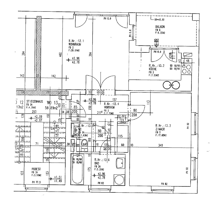 Abstellplatz, Bad, Balkon, Kellerabteil, Küche, Schlafzimmer, Vorraum, WC, Wohn/EsszimmerStockwerk