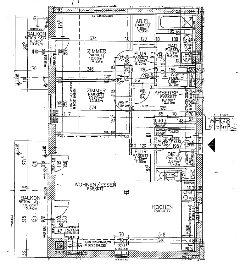 Balkon, Balkon, Abstellraum, Arbeitsecke, Bad, Flur, Kellerabteil, Kinderzimmer, Küche, Schlafzimmer, Tiefgaragenabstellplatz, Vorraum, WC, Wohn/EsszimmerStockwerk