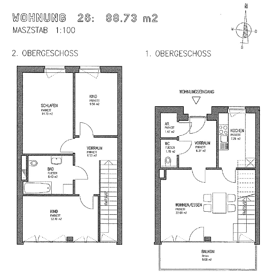 In zentraler Lage in Deutschlandsberg befindet sich diese 4-Zimmer-Maisonette-Wohnung im 1. und 2. Obergeschoss. Der Wohnung ist ein Kellerabteil und ein PKW-Abstellplatz in der Tiefgarage zugeordnet.