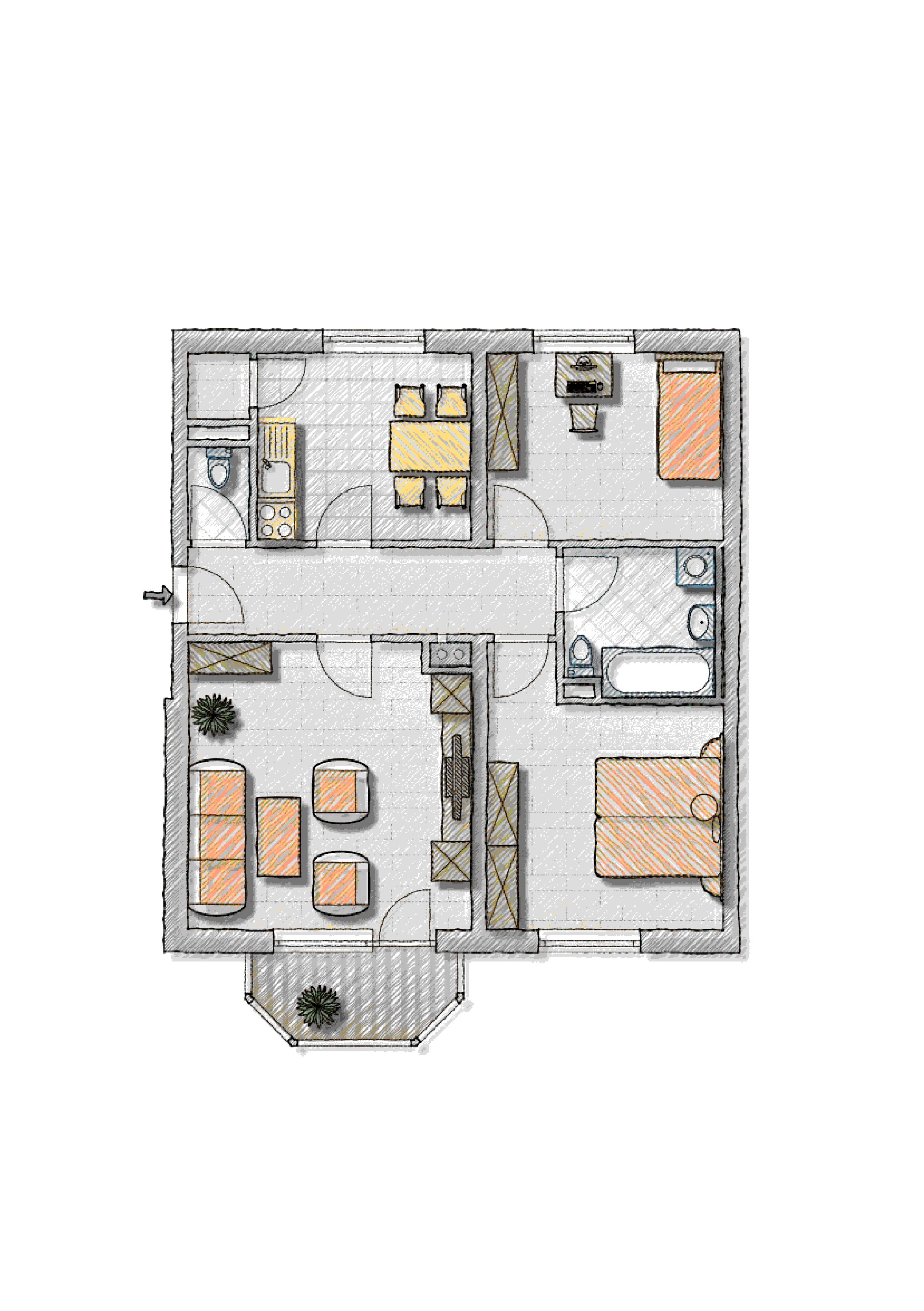 Abstellplatz, Abstellraum, Bad, Balkon, Kellerabteil, Kinderzimmer, Kochen+Essen, Schlafzimmer, Vorraum, WC, WohnzimmerStockwerk
