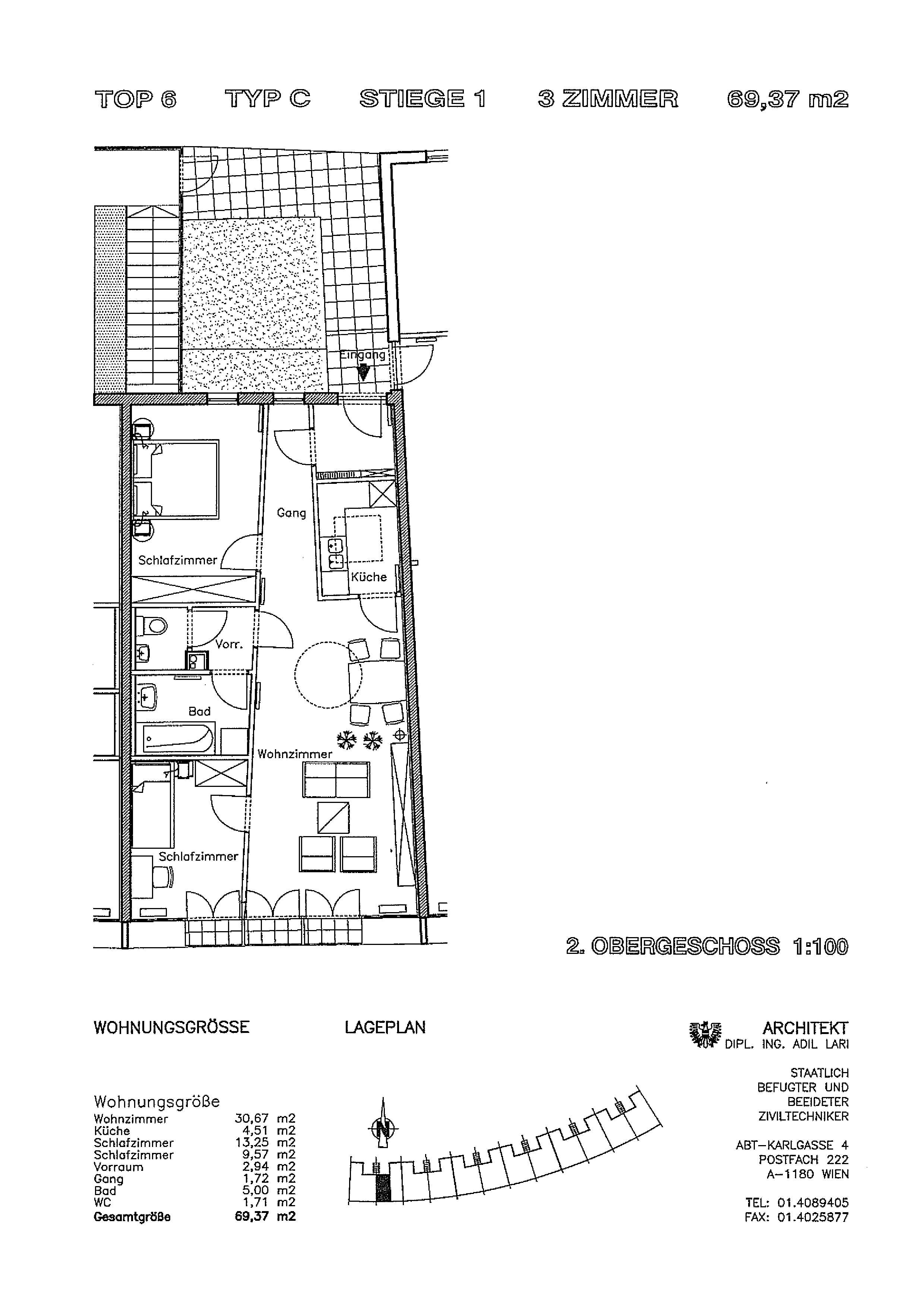 Abstellplatz, Bad, Balkon, Flur, Gang, Gartenanteil, Kellerabteil, Küche, Schlafzimmer, Vorraum, WC, Wohn/EsszimmerStockwerk