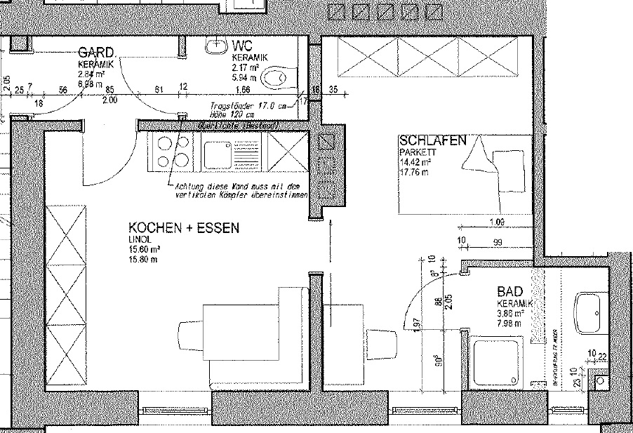 Die 2-Zimmer-Mietwohnung befindet sich im 1. Obergeschoss. Die Beheizung der Wohnung erfolgt mittels einer Gasheizung. Die Heizkosten sind nicht in der Miete inkludiert und sind direkt mit dem Heizungsanbieter abzurechnen.