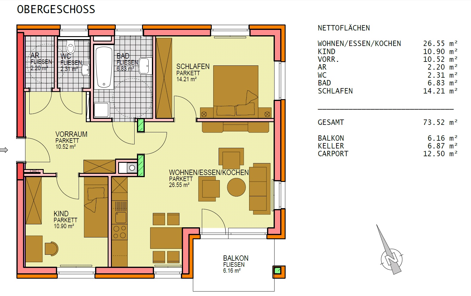 GRÖßE 73,52 m2 3 Zimmer