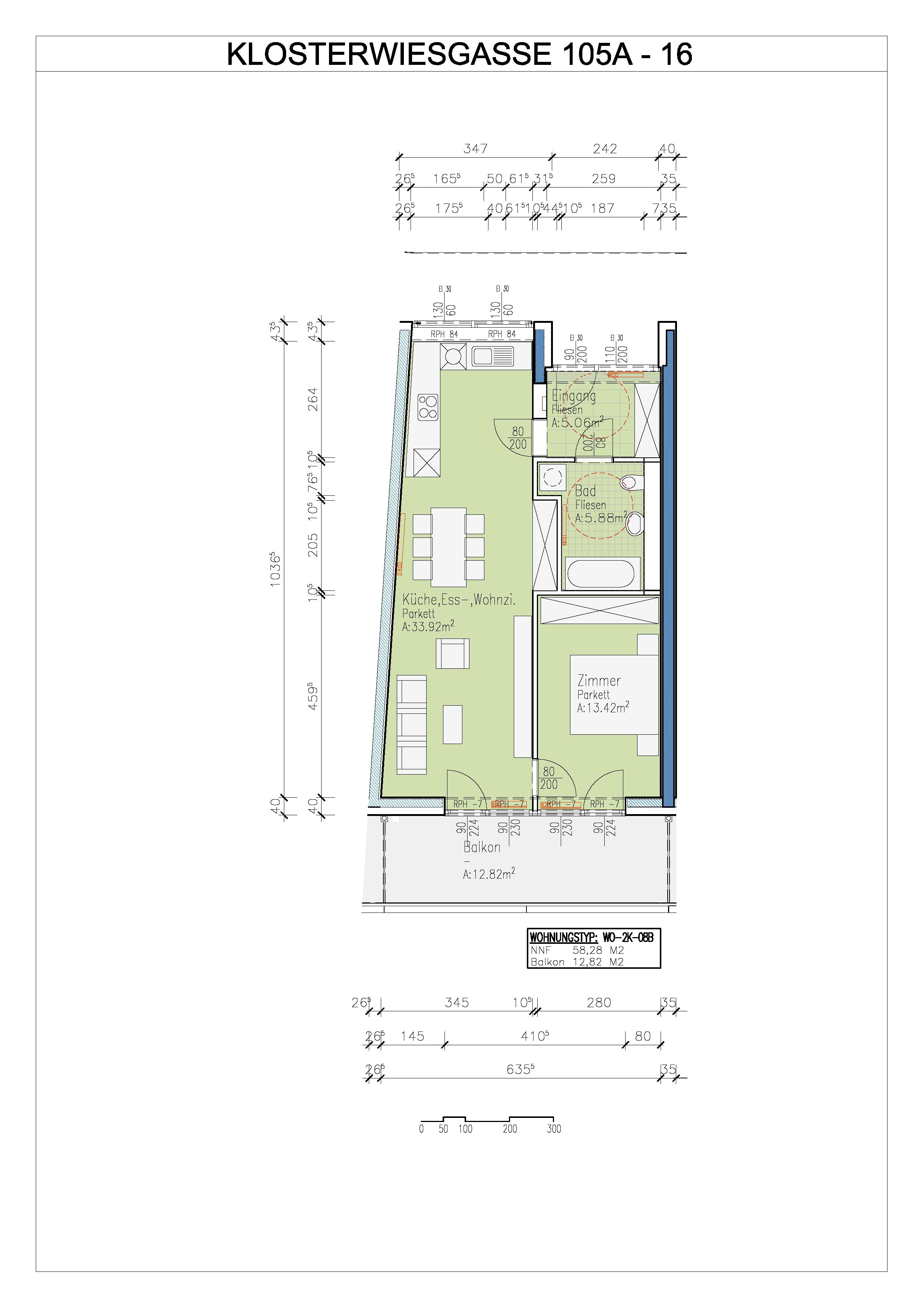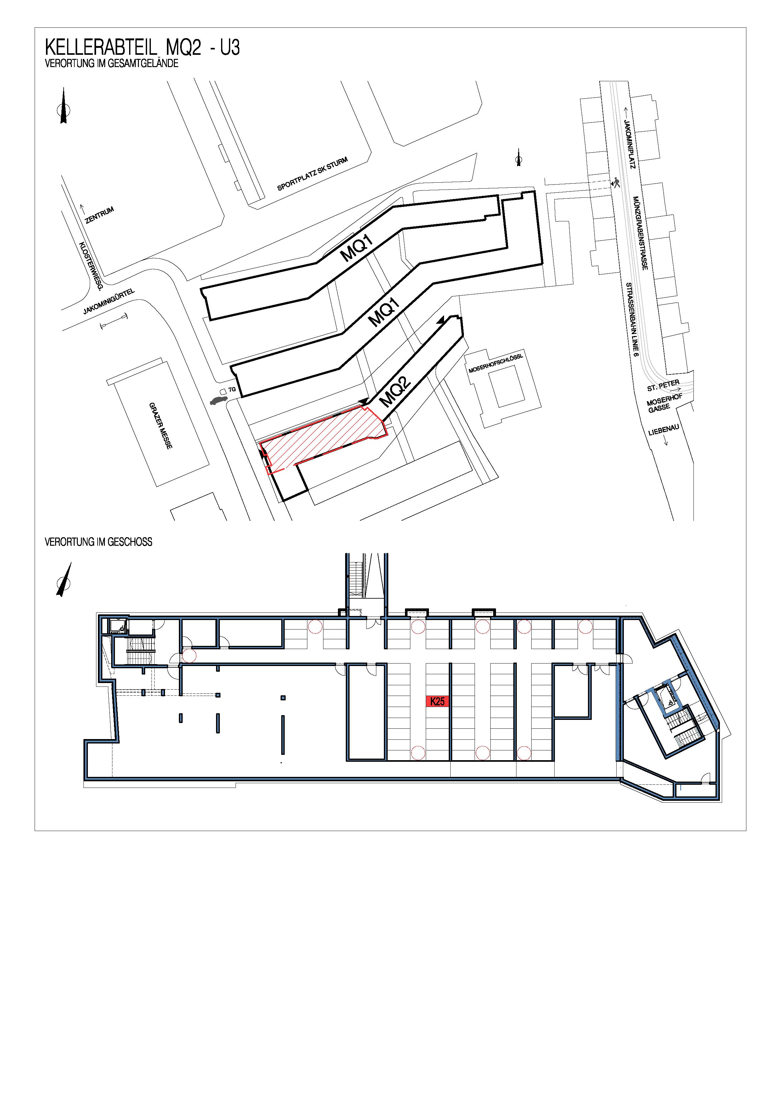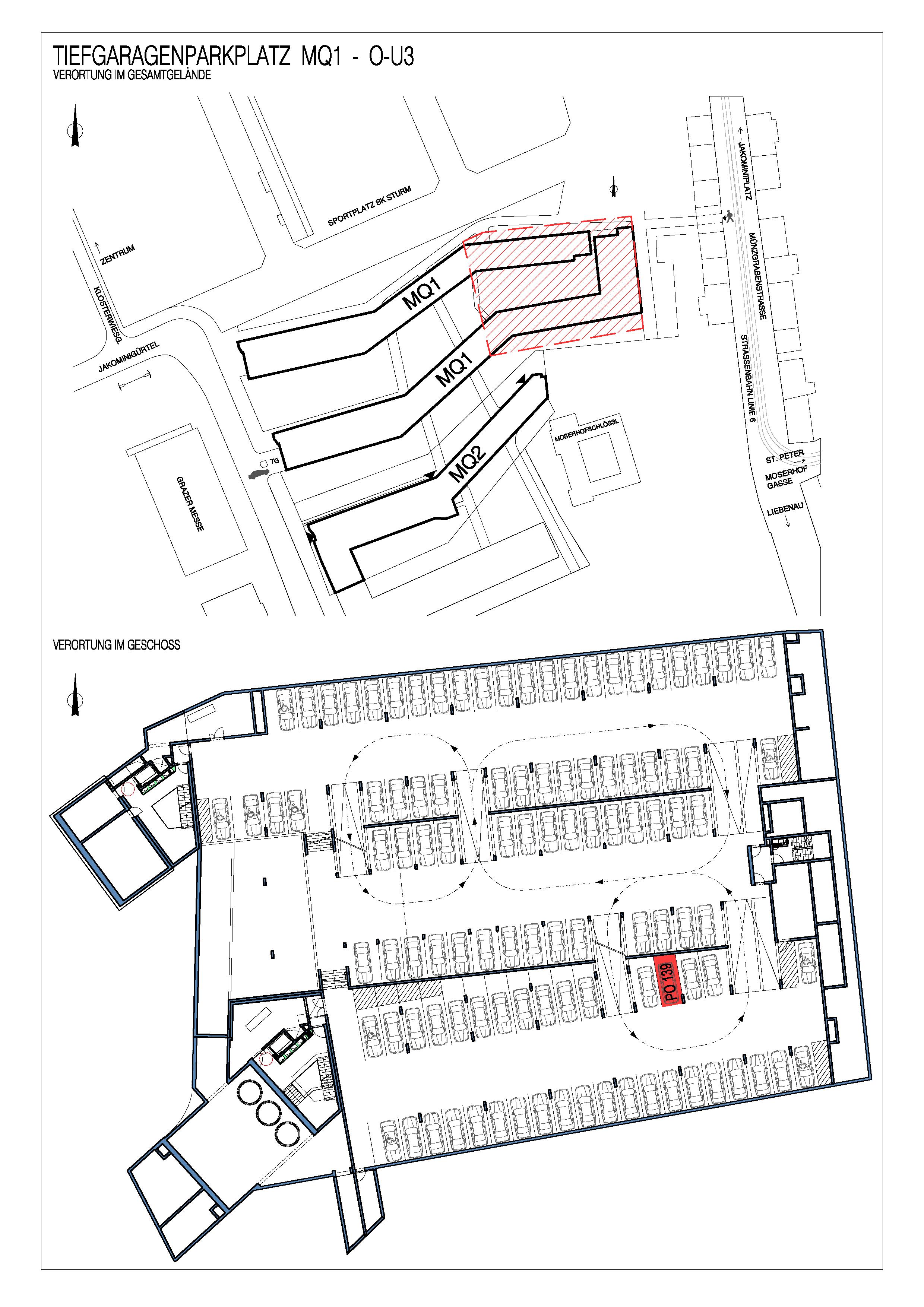 Bad/WC, Balkon, Eingang, Kellerabteil, Schlafzimmer, Tiefgaragenabstellplatz, Wohnen/Essen/KücheStockwerk