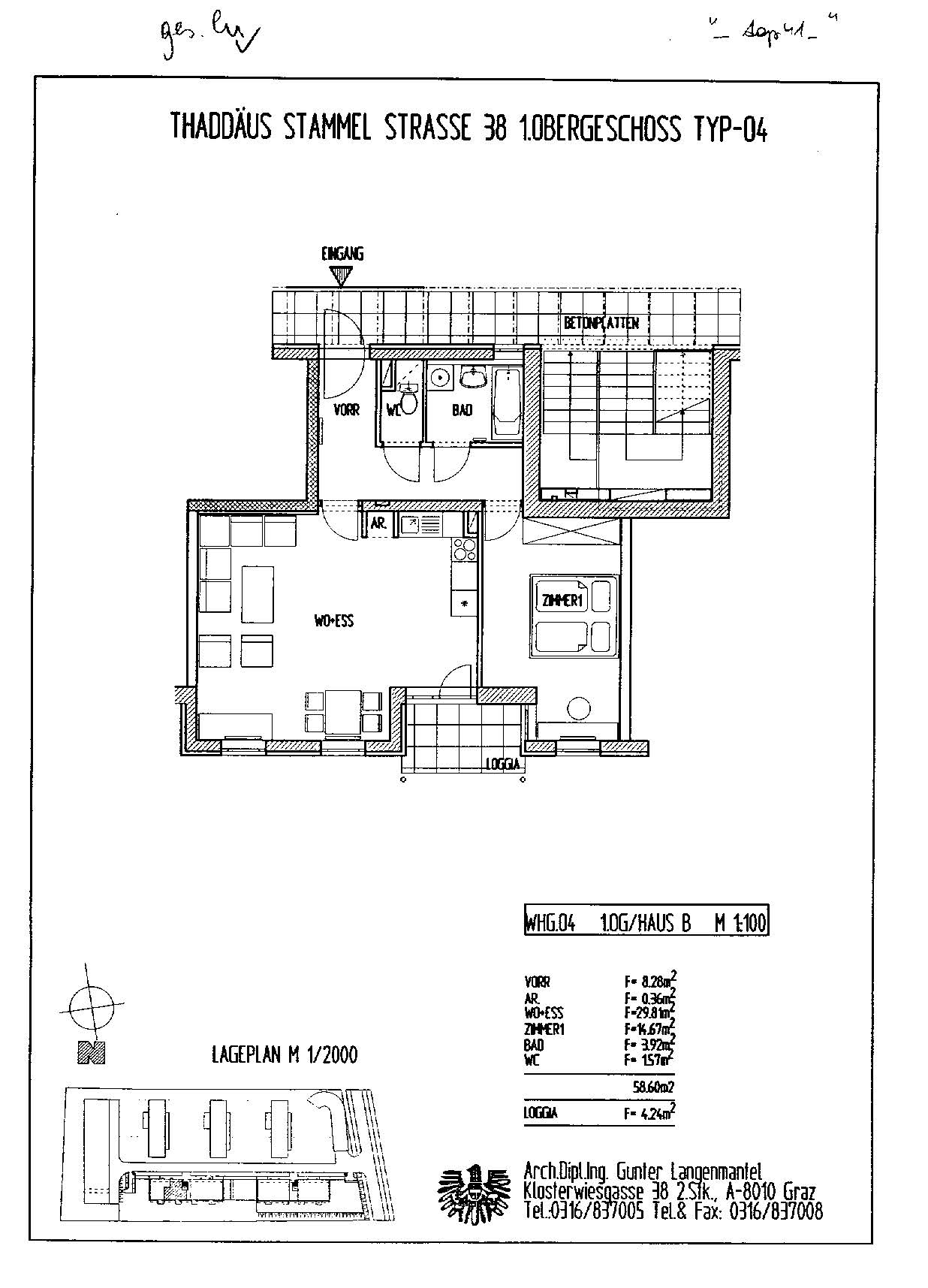 Abstellraum, Bad, Flur, Küche, Loggia, Schlafzimmer, WC, Wohn/EsszimmerStockwerk