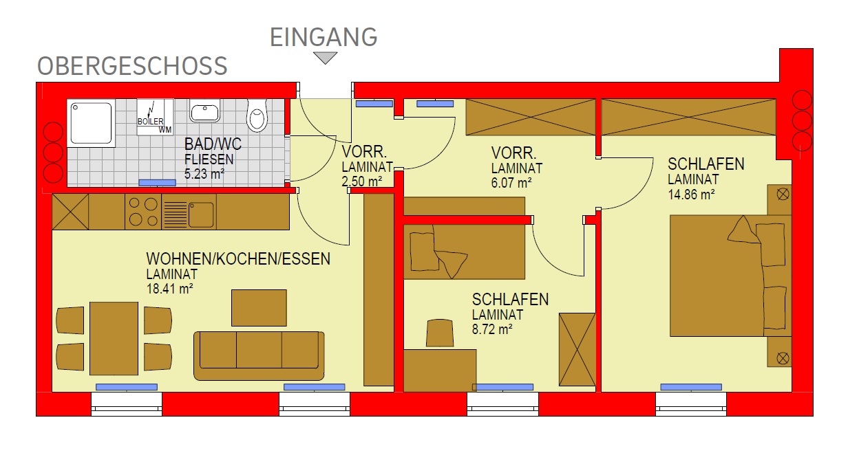 GRÖßE 55,79 m2 3 Zimmer