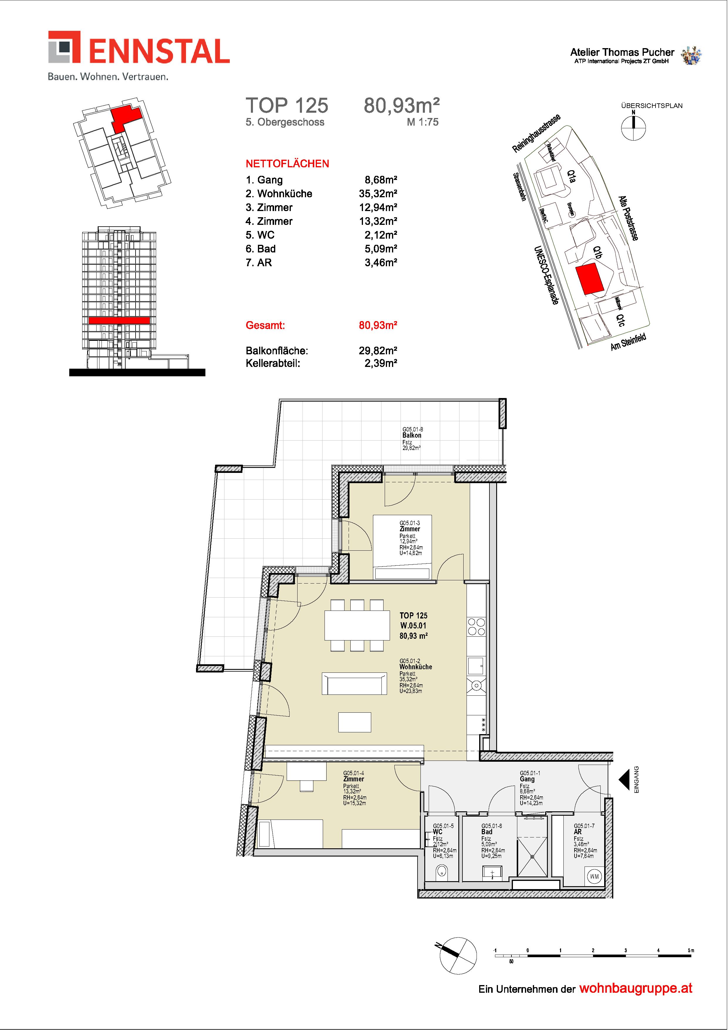 Abstellraum, Bad, Balkon, Gang, Kellerabteil, Kinderzimmer, Lift, Schlafzimmer, WC, Wohnen/Essen/KücheStockwerk