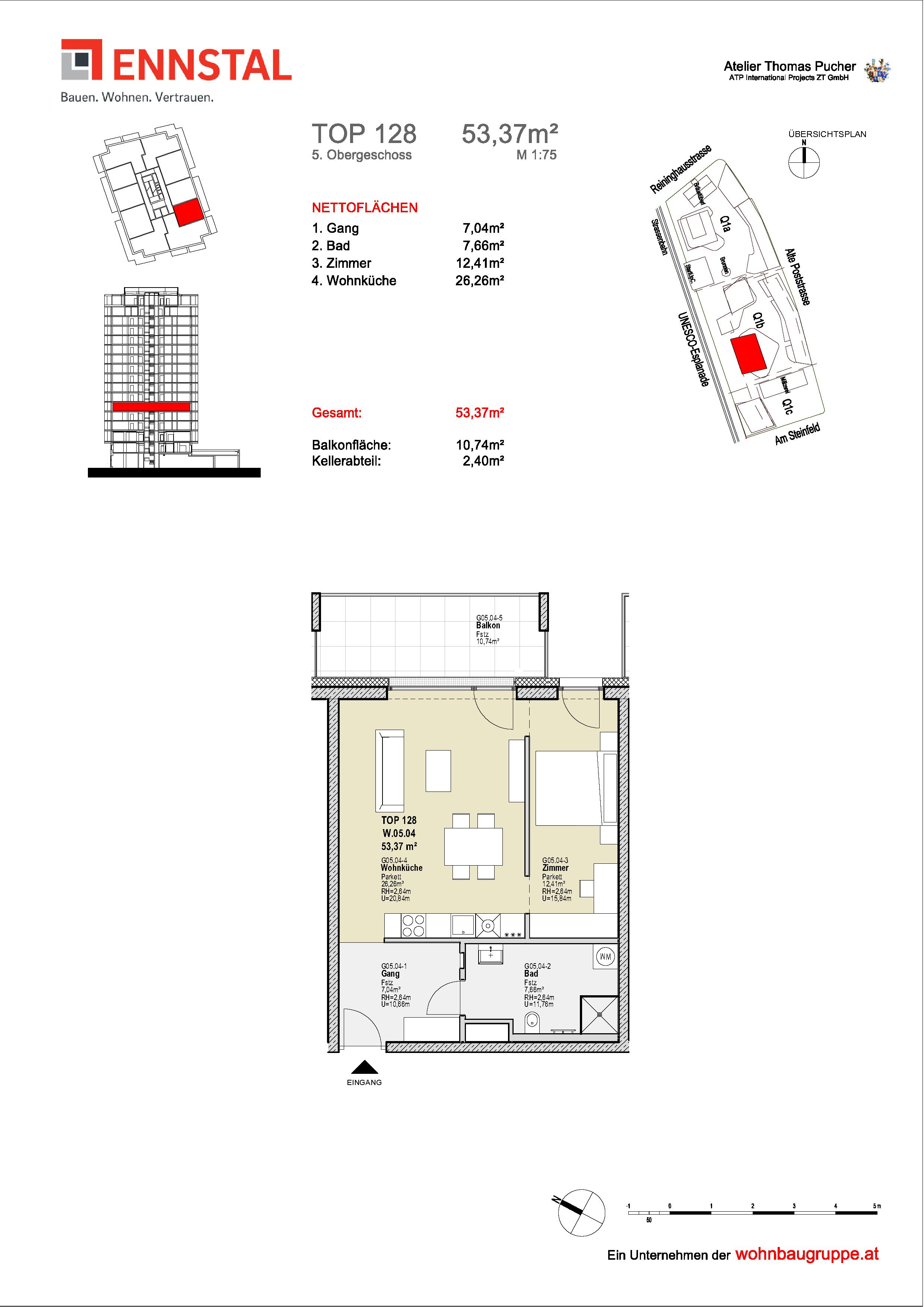 Bad/WC, Balkon, Gang, Kellerabteil, Lift, Wohnen/Essen/Küche/SchlafenStockwerk