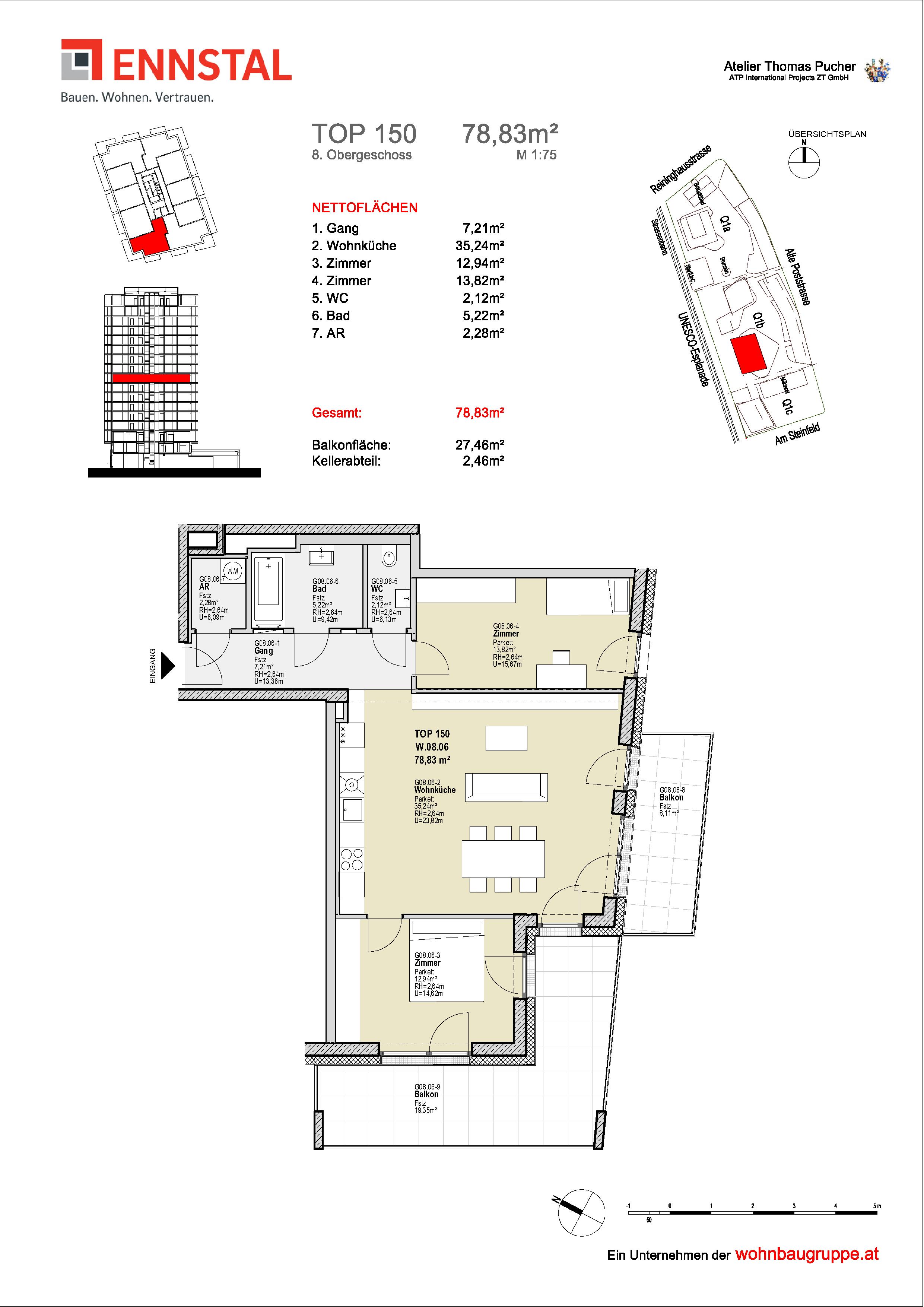 Diese 3-Zimmer-Mietwohnung befindet sich im 8. Obergeschoss des modernen Wohnbauprojekts "Esplanade 7" in Graz-Reininghaus. Das Gebäude umfasst insgesamt 16 Geschosse und bietet höchsten Wohnkomfort in einer attraktiven Lage. Die Wohnung besticht durch ihre durchdachte Raumaufteilung: Sie verfügt über eine geräumige Wohnküche, ein helles Schlafzimmer, ein Kinderzimmer, ein modernes Bad, ein separates WC und einen praktischen Abstellraum. Der schöne Balkon lädt zum Entspannen ein und bietet eine perfekte Ergänzung zum Innenbereich. Ein eigenes Kellerabteil sorgt für zusätzlichen Stauraum. Optional steht ein Stellplatz in der Tiefgarage des Quartier 1 zur Anmietung zur Verfügung, um eine stressfreie Parkplatzsituation zu gewährleisten.