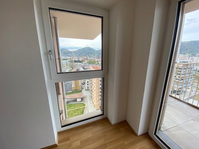 Diese wunderschöne geräumige 3 Zimmer Wohnung mit tollem Grundriss im neuen Stadtteil Reininghaus mit 3 großzügigen Balkonen befindet sich im 13. OG des Hauses Eslanade 7. Die Wohnung ist mit einer Küche ausgestattet.Ein eigenes Kellerabteil sorgt für zusätzlichen Stauraum.Im Objekt Green Tower, direkt neben der Esplanade 7 befindet sich ein Spar Markt, in unmittelbarer Nähe das Cafe Auer.Optional steht ein Stellplatz in der Tiefgarage des Quartier 1 zur Anmietung zur Verfügung, um eine stressfreie Parkplatzsituation zu gewährleisten.
