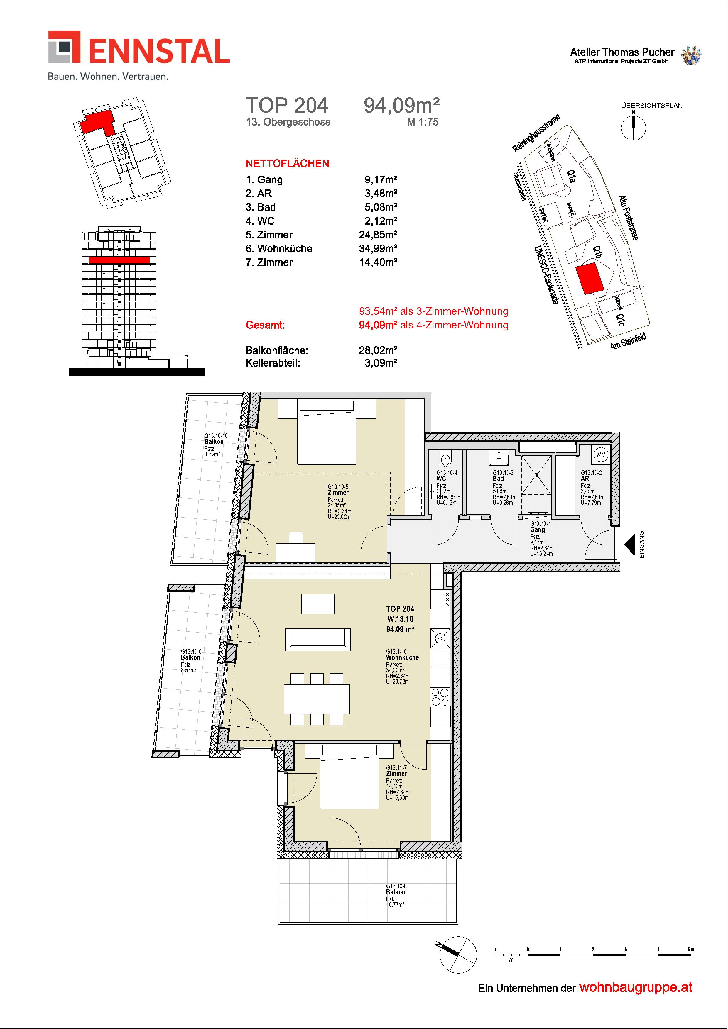 Balkon, Balkon, Abstellraum, Bad, Gang, Kellerabteil, Kinderzimmer, Lift, Schlafzimmer, WC, WohnkücheStockwerk