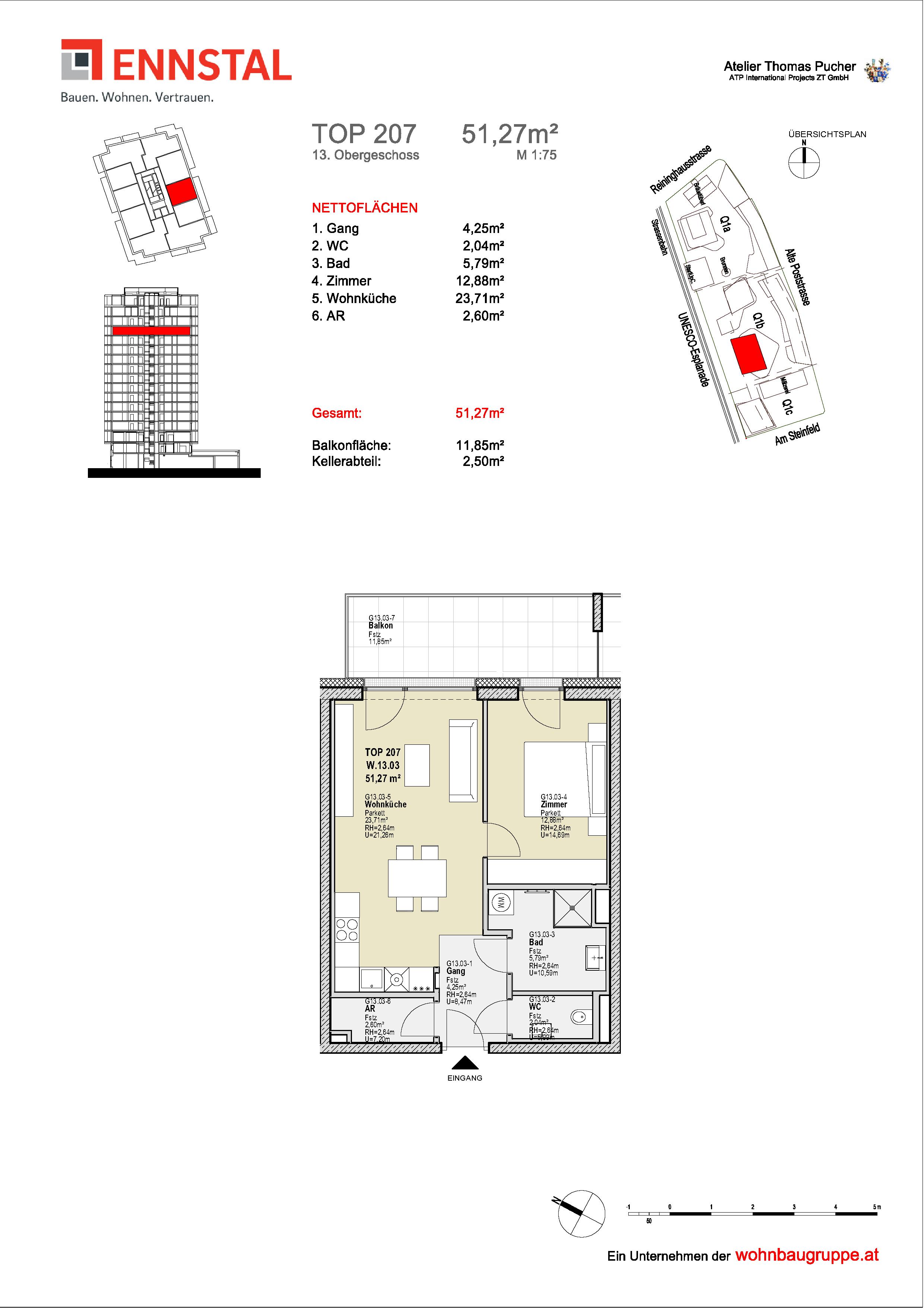 Abstellraum, Bad, Balkon, Gang, Kellerabteil, Lift, Schlafzimmer, WC, WohnkücheStockwerk