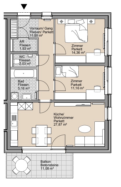 Abstellraum, Bad, Balkon, Gang, Kellerabteil, Kinderzimmer, Schlafzimmer, Tiefgaragenabstellplatz, Vorraum, WC, Wohnen/Essen/KücheStockwerk