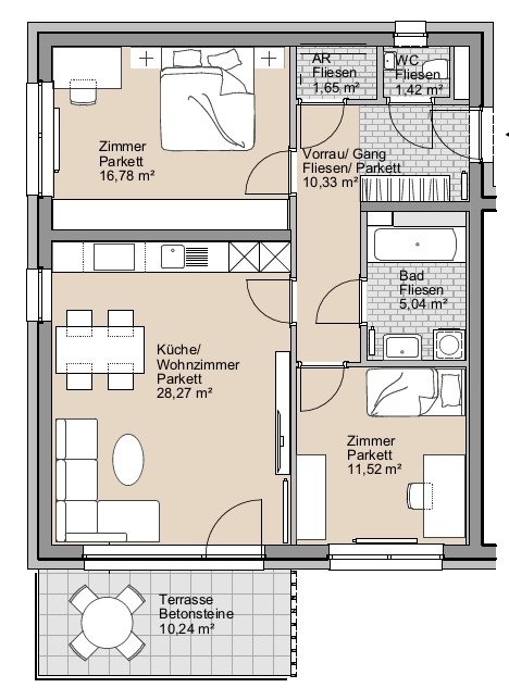 GRÖßE 75,59 m2 3 Zimmer