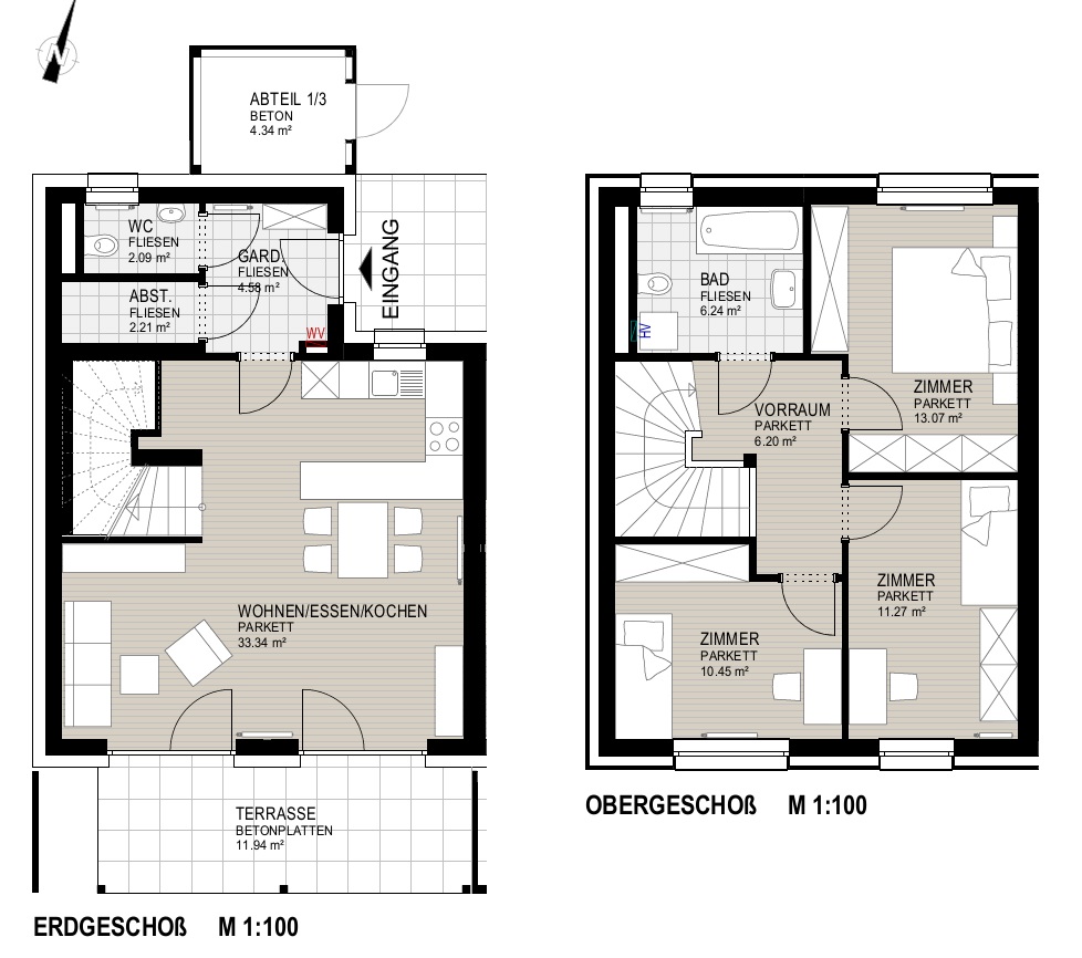 Garten, Garten, Kinderzimmer, Kinderzimmer, Abstellraum, Bad, Carport, Garderobe, Kellerersatzabteil, Schlafzimmer, Terrasse, Vorraum, WC, Wohnen/Essen/KücheStockwerk