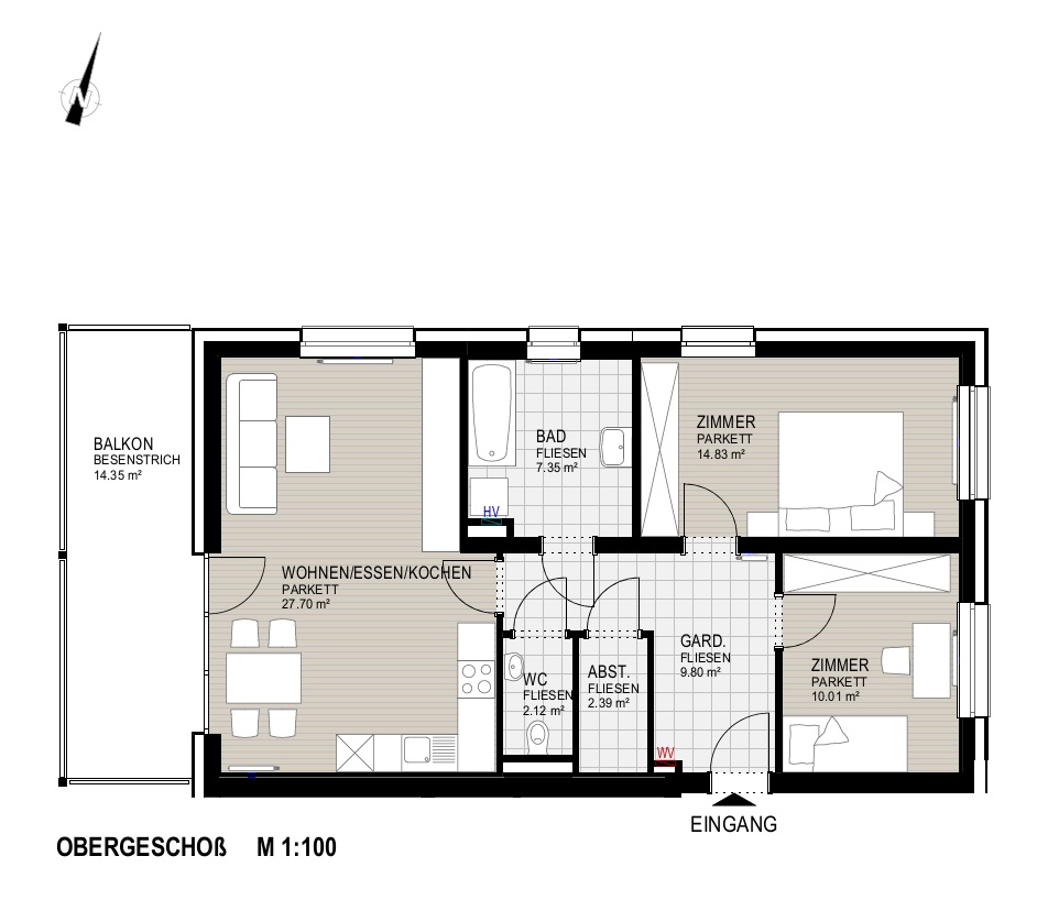 GRÖßE 74,20 m2 3 Zimmer