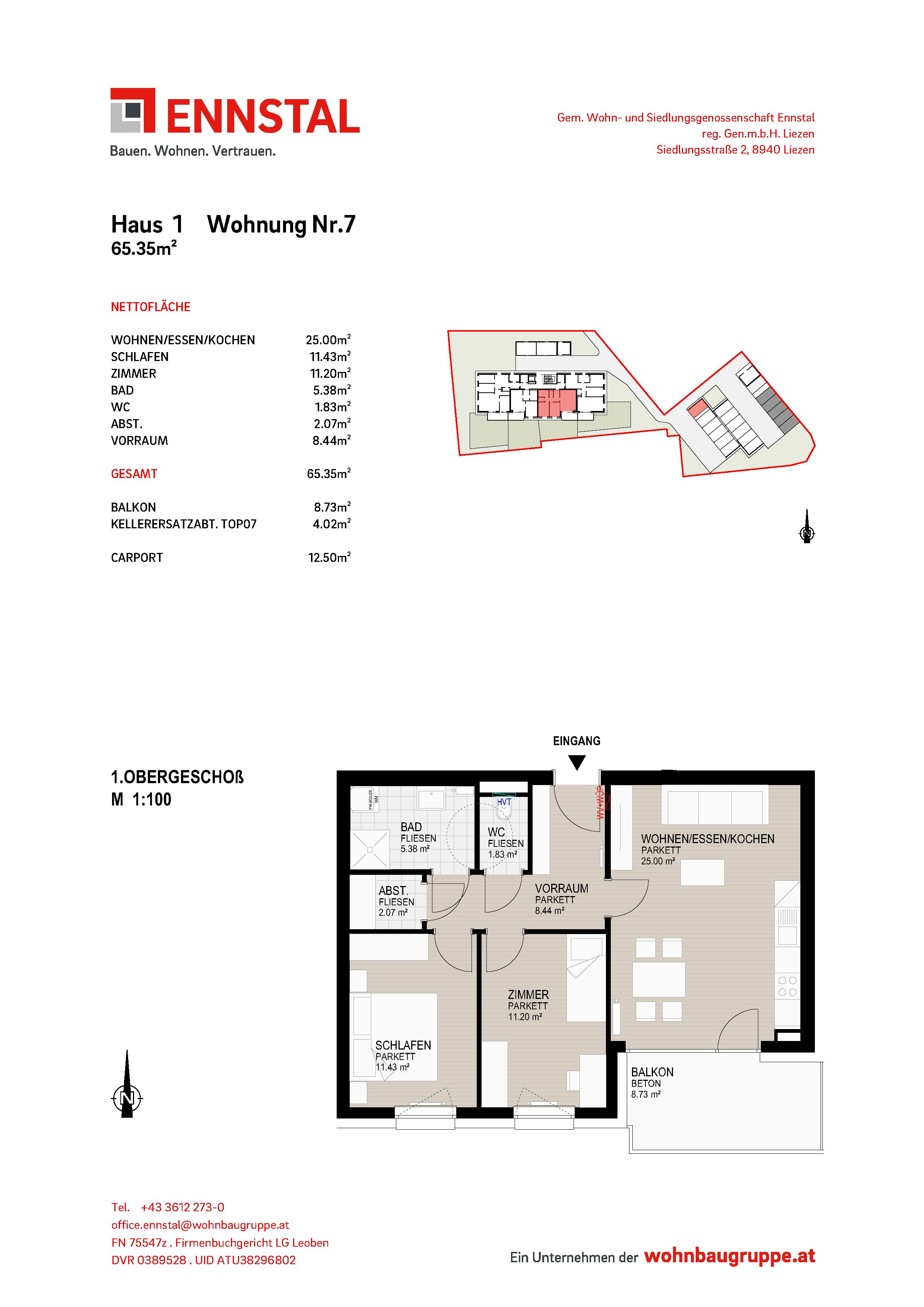 Abstellraum, Bad, Balkon, Carport, Kellerersatzabteil, Kinderzimmer, Schlafzimmer, Vorraum, WC, Wohnen/Essen/KücheStockwerk
