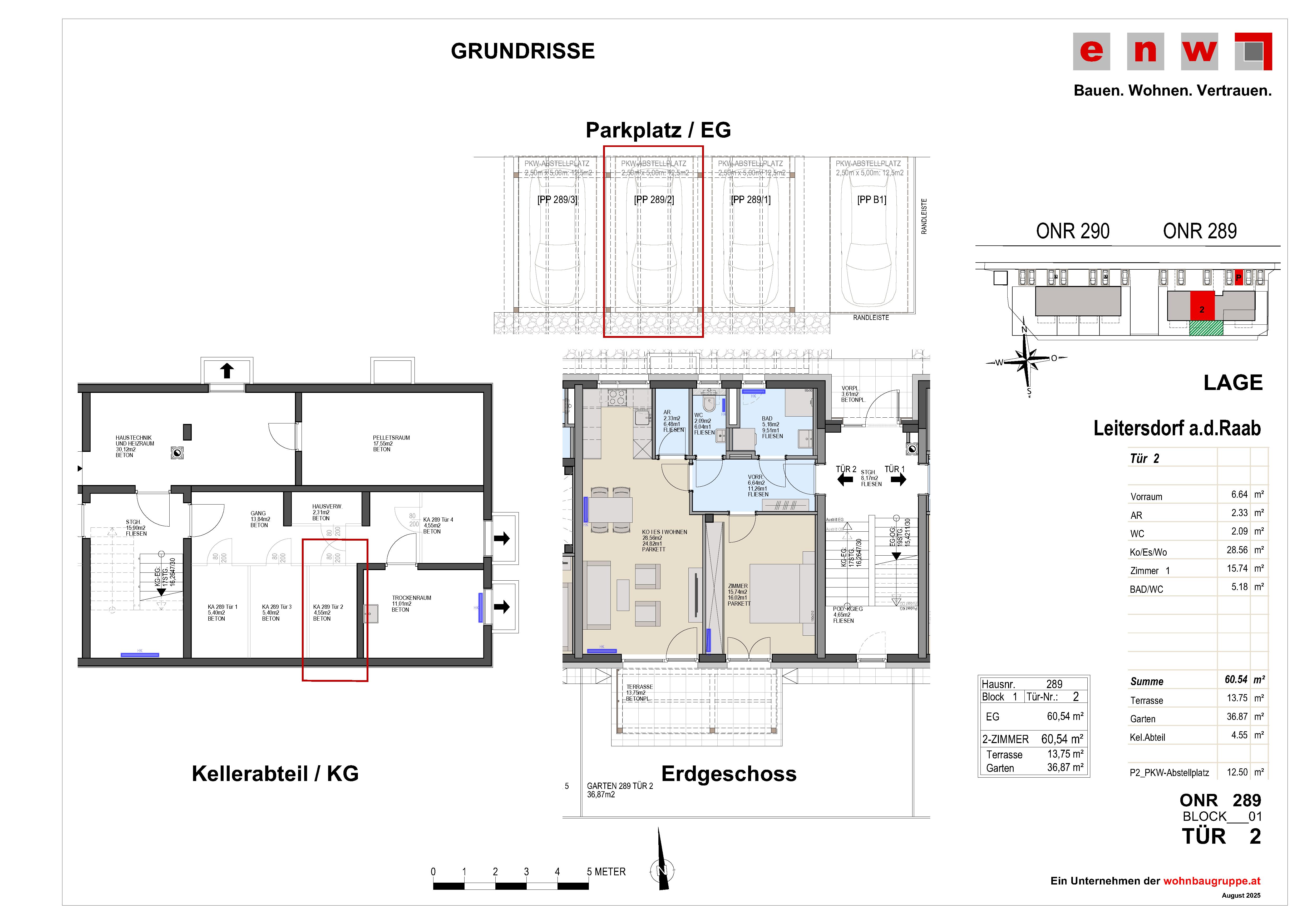 Abstellraum, Bad, Carport, Dusche, Gartenanteil, Kellerabteil, Schlafzimmer, Terrasse, Vorraum, WC, Wohnen/Essen/KücheStockwerk